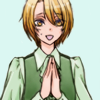 - looking down; reminiscing; smiling