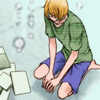 - sitting back on knees; defeated